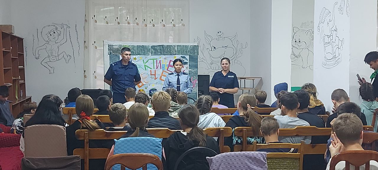 Бүгін лагерьде құқық қорғау органдарының қызметкерлерімен профилактикалық әңгіме өтті. Кездесу барысында балаларға қылмыстық және әкімшілік жауапкершілік деген не, кәмелетке толмағандардың қатысуымен қандай құқық бұзушылықтар бар және олар жасалған жағдайда қандай салдарлар туындауы мүмкін екендігі айтылды.