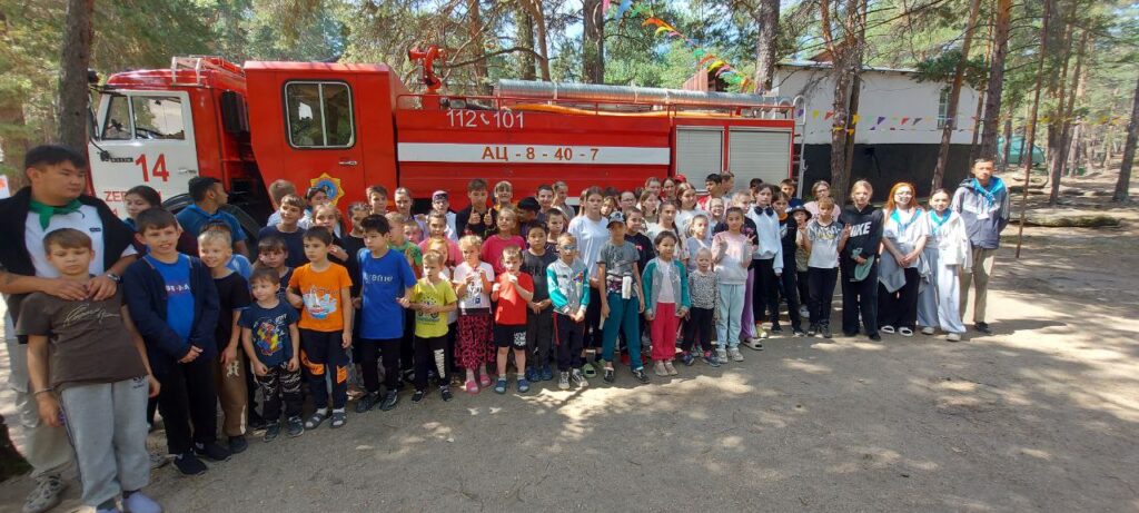 Бүгін біздің лагерьге өрт сөндіру қызметінің қызметкерлері келді. Олар балаларға өрт қауіпсіздігі ережелеріне арналған танымдық және өте маңызды кездесу өткізді.