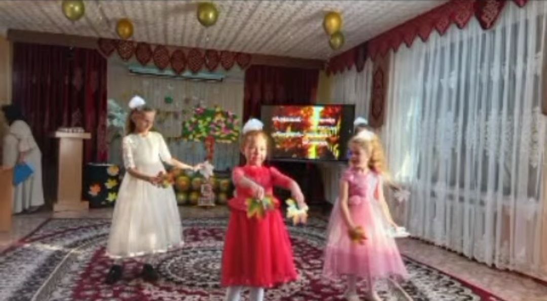 Группа девочек порадовала публику задорным танцем «Осеннии листочки», а ребята из первой и четвёртой групп представили театральные постановки «Суд над Осенью» и «Василёк и Красная Шапочка».